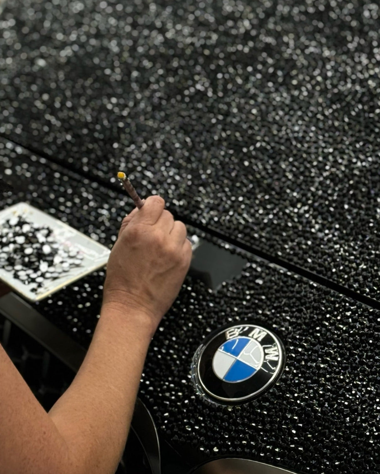 This isn’t a regular vinyl wrap — it’s a luxury transformation. Each original crystal is applied by hand, one by one, to create a dazzling finish designed for celebrities, luxury brands, and bold personal style.