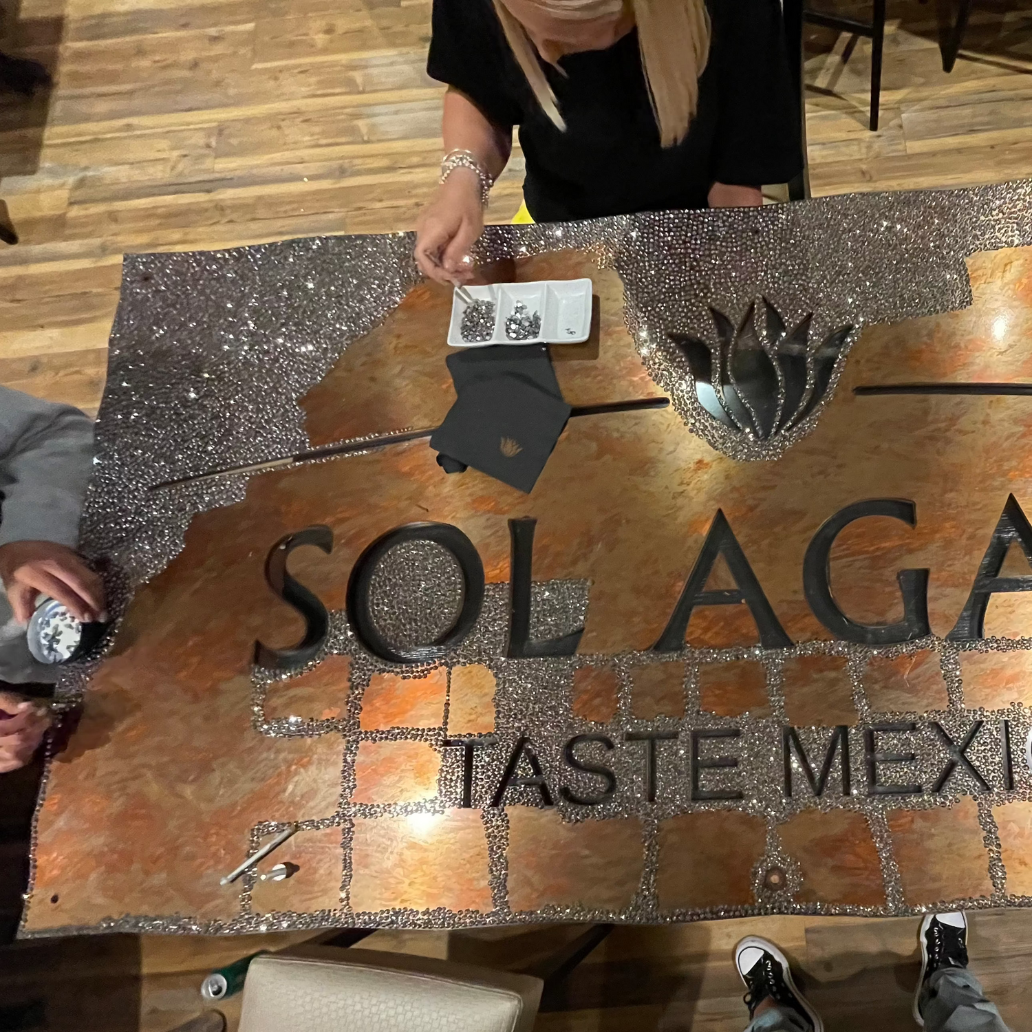 Our skilled artists carefully hand-apply tiny rhinestones to sign, creating a stunning, unforgettable shine with a captivating 3D effect. These permanently set crystals can be easily cleaned, just like a glass surface, ensuring your signs always look their best.